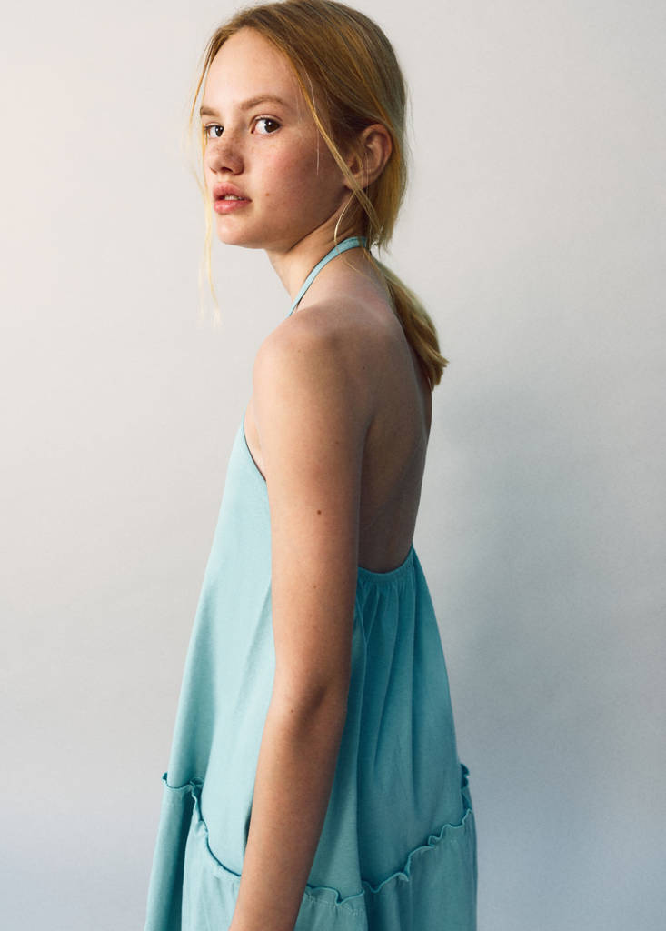 نسيج 100% قطن. تصميم مستقيم. تصميم قصير. ياقة هالتر. بدون أكمام. ظهر مفتوح