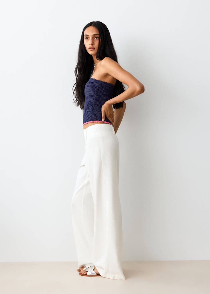 بنطلون قطن ولينين بقصة مستقيمة