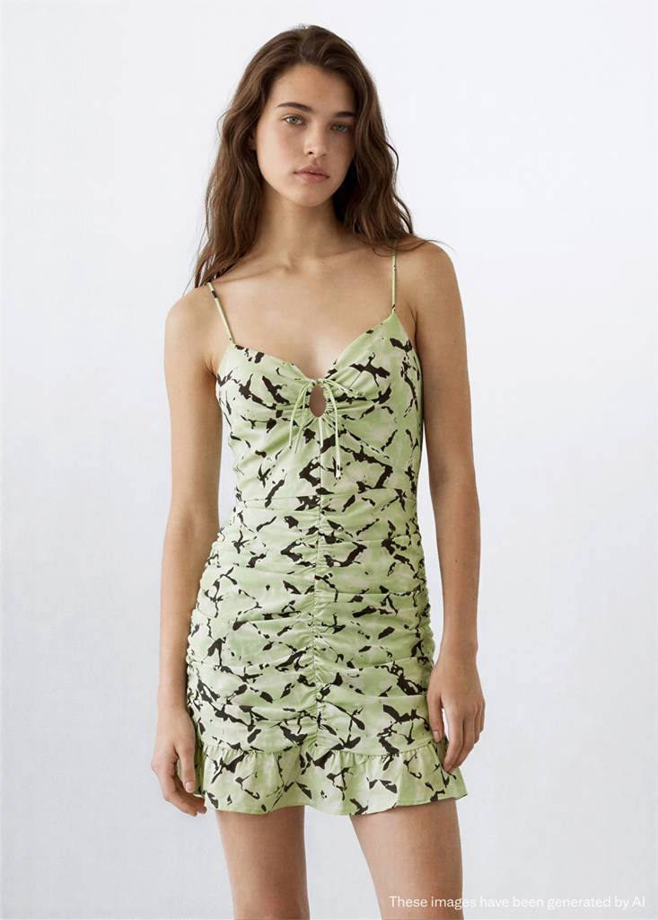 قماش انسيابي. تصميم مستقيم. تصميم قصير. تصميم tie-dye. تصميم مسحوب. ياقة على شكل V. أشرطة رفيعة. تفاصيل ربطة عند الرقبة. إغلاق بسحاب