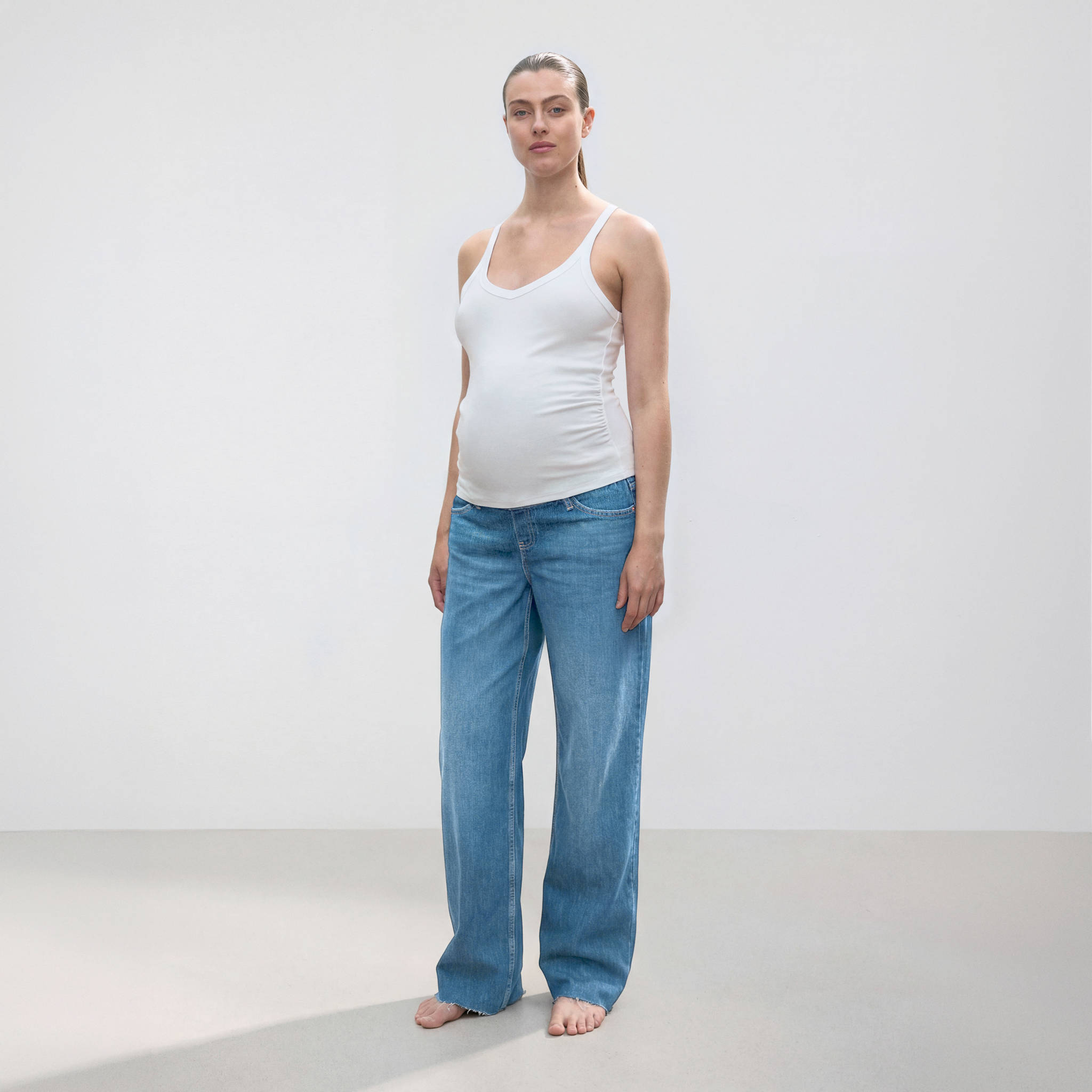 Discover Mango's maternity jeans collection, designed to offer comfort and style during pregnancy. This selection includes a variety of styles, from classic straight jeans to modern flare and skinny jeans. Each garment is crafted from denim-style cotton fabric, ensuring freedom of movement and a soft feel. Maternity jeans are perfect for any occasion. Whether you're looking for a casual everyday look or something more elegant for an outing, these women's jeans adapt to your needs. For example, the black denim flare jeans are ideal for an informal dinner, while the women's straight jeans in off-white can be the perfect choice for a lunch with friends. One of the main benefits of maternity jeans is their elastic waistband, which provides support without sacrificing comfort. This feature is essential to accommodate the growing belly, allowing you to feel comfortable at all times. Additionally, the elastic knit band ensures that the jeans stay in place without the need for constant adjustments. Mango's collection offers a wide range of colours, from classic dark blue to black denim. This allows you to choose the shade that best suits your personal style. Moreover, the variety of designs, such as women's wide-leg jeans or balloon jeans, ensures you find the perfect fit for every stage of pregnancy. In summary, Mango's maternity jeans combine style and functionality, making them an essential garment in your wardrobe during pregnancy. We also offer plus size jeans options to ensure everyone finds the perfect size. Explore the collection and find the jeans that best suit your needs and lifestyle.
