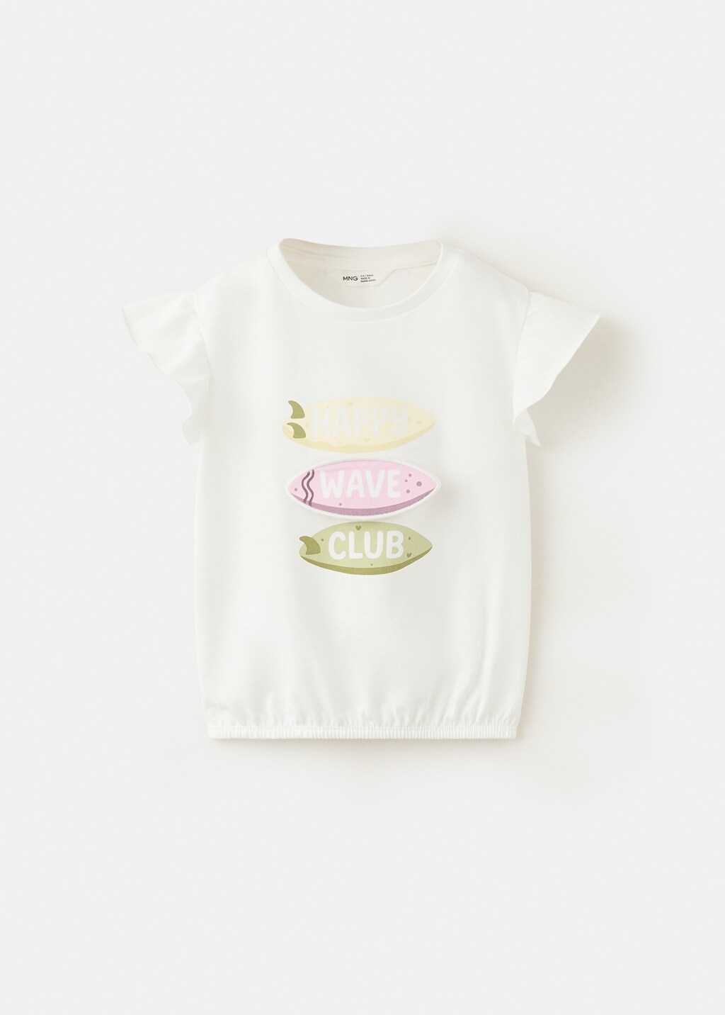 100% cotton fabric. Straight design. Round neck. Short sleeves. Image printed on the front. Sleeve with frill detail. Waist with elastic panel
