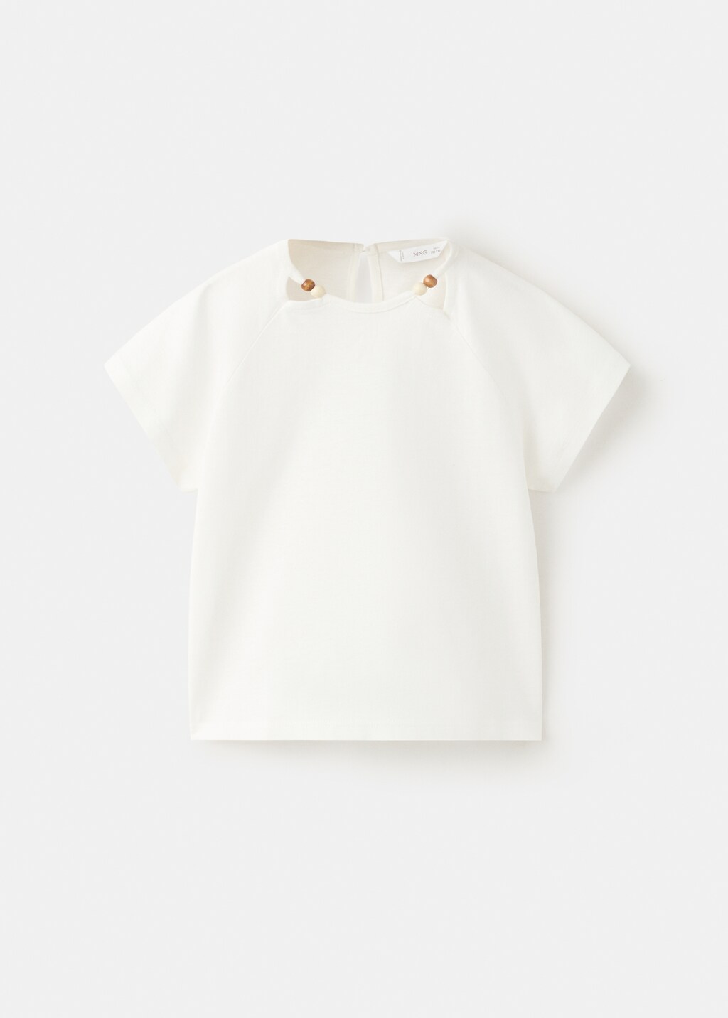 Crafted from 100% cotton fabric, this garment features a straight design with a round neckline and short sleeves. It includes a teardrop fastening at the back and a bead detail.