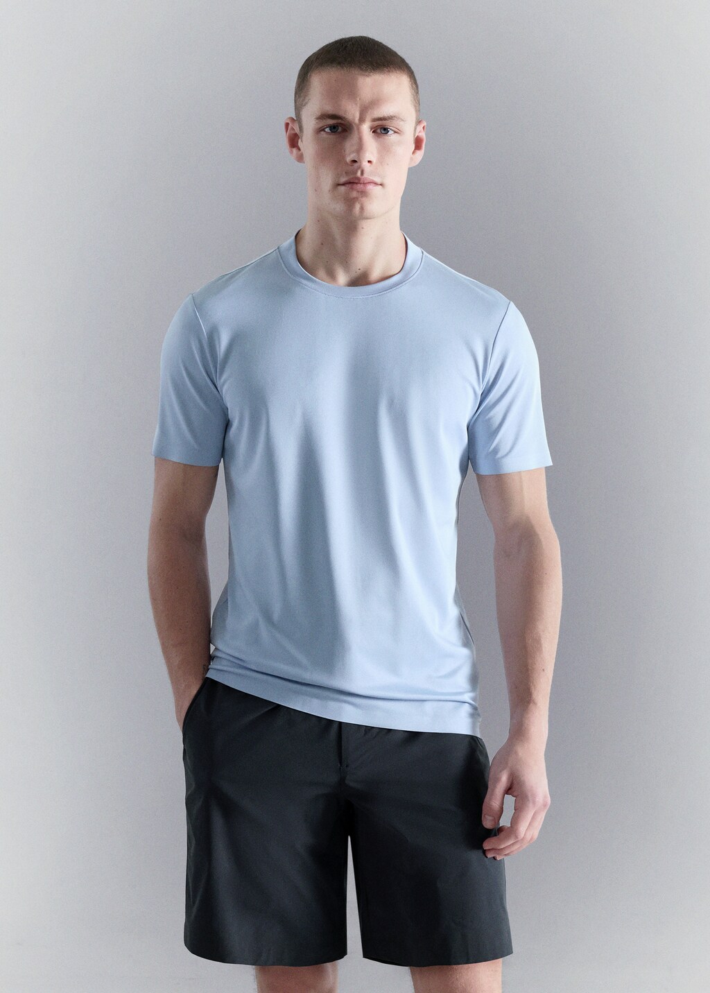 Performance Collection. Perfect for those looking for a functional and comfortable garment. Thermoregulating: This fabric offers optimal breathability to keep you at a stable temperature. Slim fit. Round neck. Short sleeves. Coolmax® is a special fabric that helps to expel moisture from the skin. In cold climates, keeps the body dry and warm, and in hot climates, it stands out for its lightness and freshness