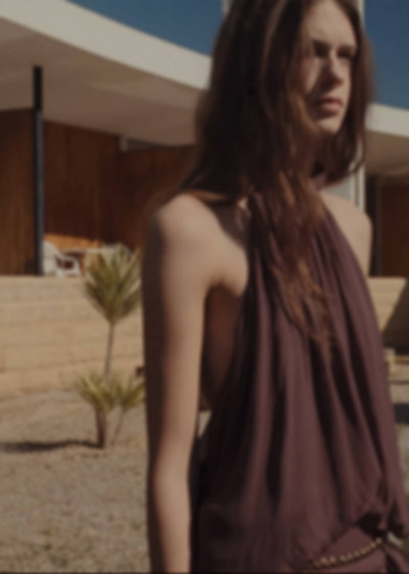 Straight design. Long design. Ruffle detail. Ruched details. Halter neck. Sleeveless. Detachable scarf. Button closing on the neck. Back zip fastening. With inner lining. This garment is part of our party and event collection, designed to elevate your looks for special occasions. Online Exclusive