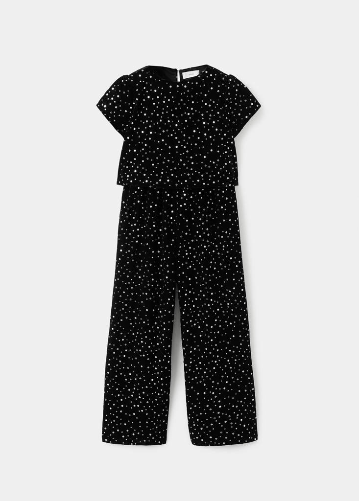 Long design. Fabric with sequin. Round neck. Short sleeves. Straight design. Button closure. Party and events collection