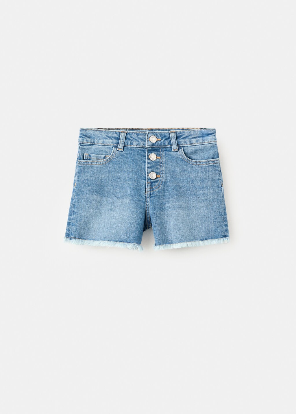 New NowFrayed hem shortsCurrent price [US$ 29.99 ]US$ 29.99Select a colourMedium BlueSelect your size6 (116cm)7 (122cm)8 (128cm)9 (134cm)10 (140cm)11 (146cm)12 (152cm)13-14 years (164cm)Size guideAddAdd to your wishlistSee lookFree delivery to storeSee availability in storeDescriptionDenim-style cotton fabric. Straight design. Short design. Belt loops. Five pockets. Triple button fastening. Frayed finish.See detailsItem qualitiesRecycled cottonAt least 20%This fibre is obtained from pre- and post-consumer textile waste that is transformed into new fabrics.Share