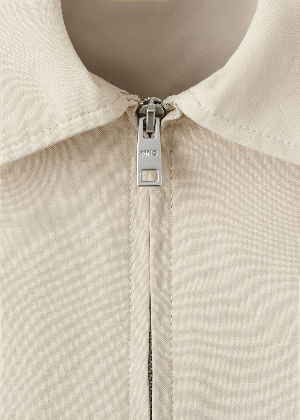 The navy blue colour is an online exclusive. Cotton and lyocell blend fabric. Shirt collar. Two side welt pockets with snap buttons. Long sleeves with buttoned cuffs. Zip closure. Without inner lining.