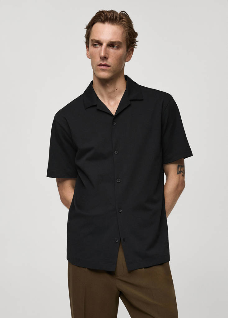 Bowling collar cotton shirtInitial price struck through [US$ 59.99 ]US$ 59.99Current price [US$ 47.99 ]US$ 47.99-20%Select a colourBlackThe model is wearing size M and is 188cm tall.Select your sizeXSNot available. I want it!SNot available. I want it!MNot available. I want it!LNot available. I want it!XLNot available. I want it!XXLNot available. I want it!DimensionsNotify meAdd to WishlistSee lookFree delivery to storeRegular fit. Cotton piquet fabric. Bowling collar. Button fastening at the front. Short sleeves. Straight hem with side slitsDetails, composition and careStore availability
