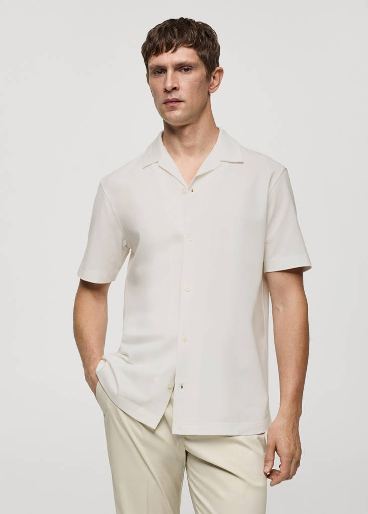 Bowling collar cotton shirtInitial price struck through [US$ 59.99 ]US$ 59.99Current price [US$ 47.99 ]US$ 47.99-20%Select a colourEcruThe model is wearing size M and is 185cm tall.Select your sizeXSNot available. I want it!SNot available. I want it!MNot available. I want it!LNot available. I want it!XLNot available. I want it!XXLNot available. I want it!DimensionsNotify meAdd to WishlistSee lookFree delivery to storeRegular fit. Cotton piquet fabric. Bowling collar. Button fastening at the front. Short sleeves. Straight hem with side slitsDetails, composition and careStore availability