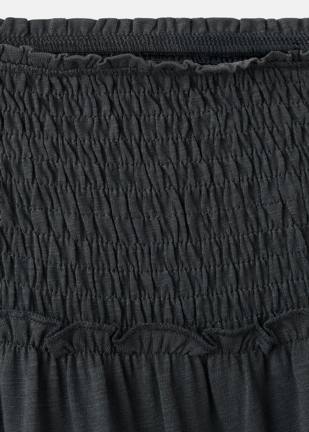 100% cotton fabric. Fluid fabric. Long design. Ruffled design. Gathered panel at the waist