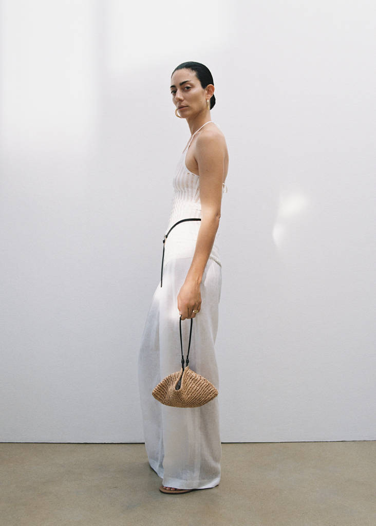 Small size. Natural fibers. Short handle. Shoulder strap. Knot closure. Inside magnet fastening. Multiway