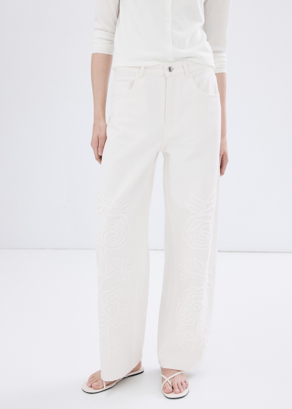 Jean large avec broderie à fleurs