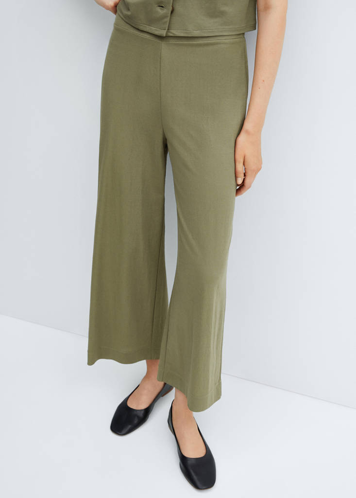 Tissu fluide. Coupe droite. Design crop. Taille élastiquée. Sans fermeture. Total look