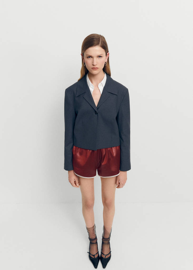 Tissu fluide. Tissu satiné. Coupe courte. Coupe droite. Taille haute. Deux poches latérales. Taille élastiquée. Sans fermeture. Bords contrastés. Encoche latérale. Collection fêtes, cérémonie et communion. Collection Selection
