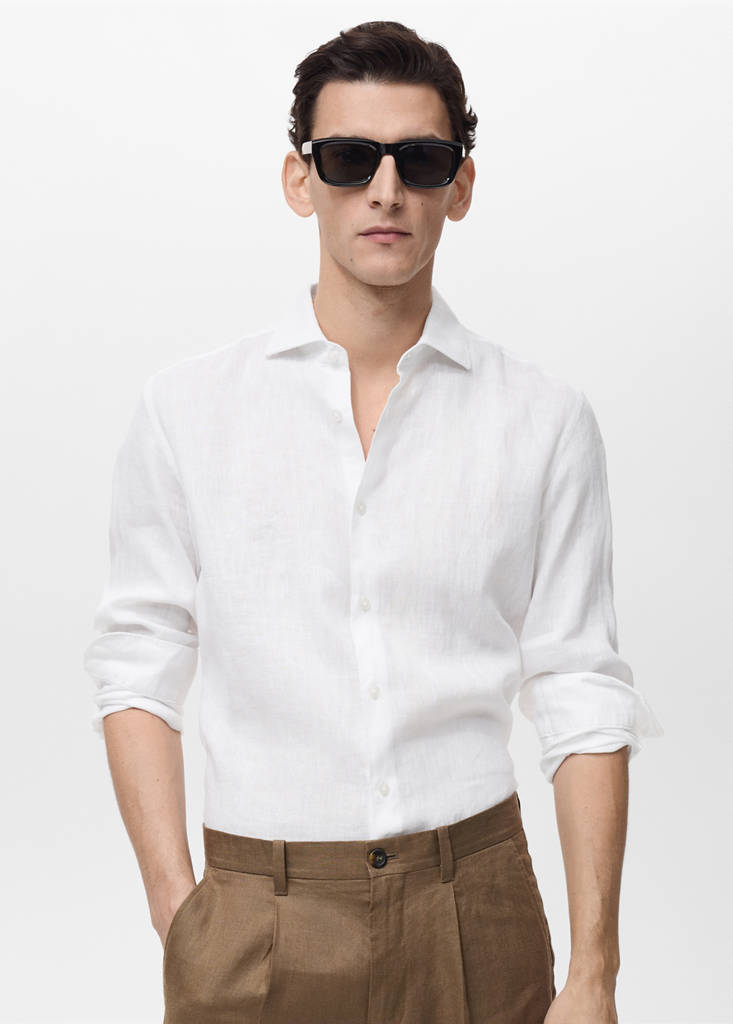 La couleur blanche est exclusive en ligne. Slim fit. Tissu 100 % lin. Col chemise. Manches longues et poignets boutonnés. Fermeture avant avec boutons. Ourlet droit