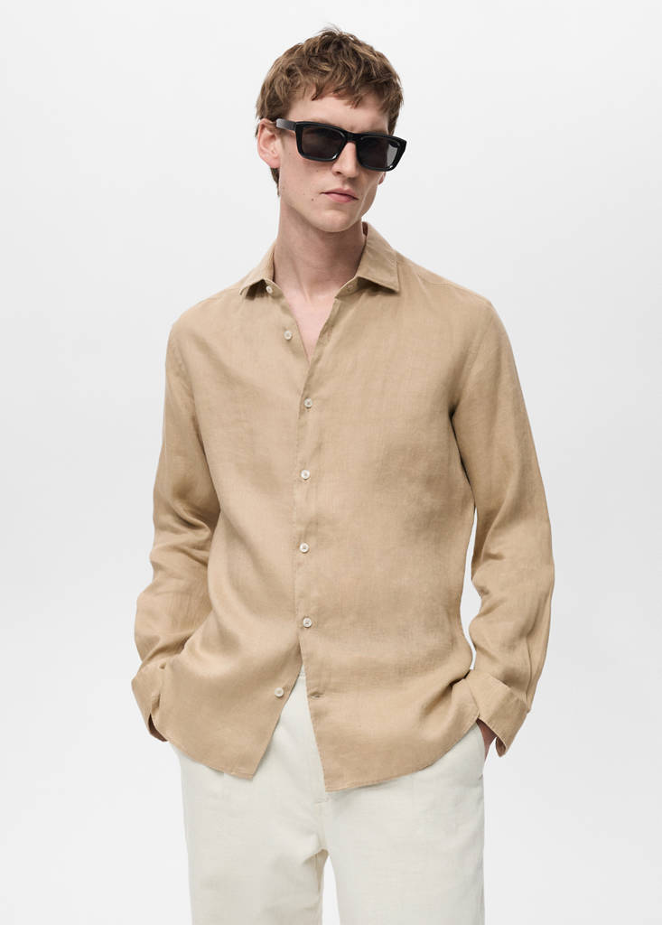 La couleur blanche est exclusive en ligne. Slim fit. Tissu 100 % lin. Col chemise. Manches longues et poignets boutonnés. Fermeture avant avec boutons. Ourlet droit