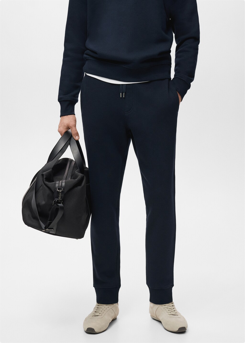 New NowCotton joggers with elastic waistCurrent price [US$ 49.90 ]US$ 49.90Select a colourNavySelect your sizeXSSMLXLXXLSize guideAddAdd to your wishlistSee lookFree delivery to storeSee availability in storeDescriptionThe colour black is exclusively online. Jogger style. Cotton blend fabric with brushed interior. Elastic waist with adjustable drawstring. Two side pockets. Ribbed hems.See detailsShare