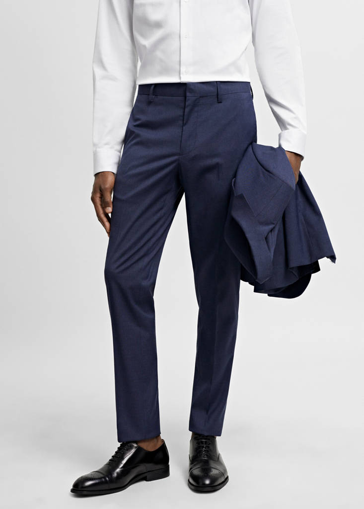 Tailoring collection. Super slim fit. Fabric made of recycled polyester, a durable, breathable, easy-care fibre that provides comfort in use. Comfort Stretch: Stretch fabric for added comfort. Micro houndstooth print. Detail of front and rear calipers. Concealed button, hook and zip fastening. Belt loops. Two side pockets. Coin pocket at hip height. Two welt pockets with button at the back. Comfort: Horizontal and vertical stretch fabric for added comfort. Dart detail. Ticket pocket. Two welt pockets at the back. Size: 36x36x36cm