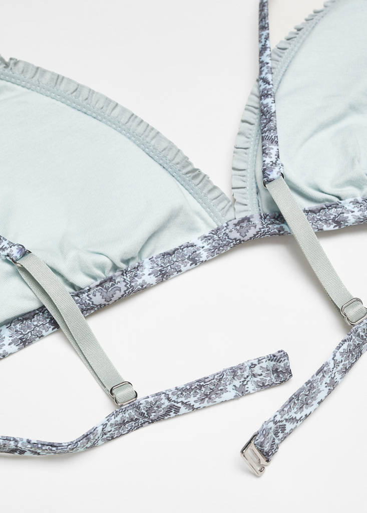 Print. Cotton cover. Triangular design. Foam filling. Back closure
