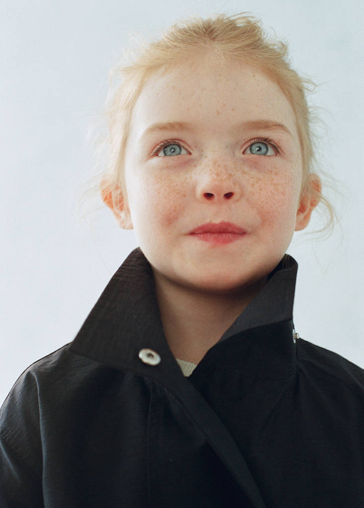 100% cotton fabric. Straight design. Funnel neck. Long sleeves. Buttoned cuffs. Button up. Label for personal data. Valentine Collection