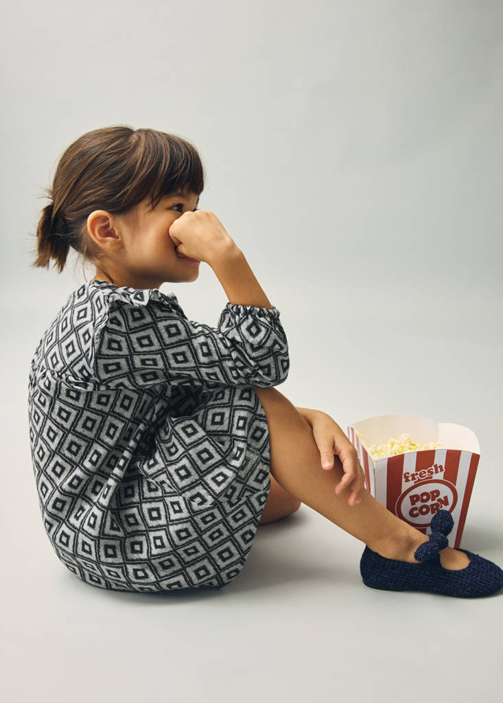 100% cotton fabric. A-line design. Printed design. Ethnic print. Round neck. Ruffles on the shoulders. Button fastening on the back section. Long sleeves with elastic cuffs. Gathered detail on the chest