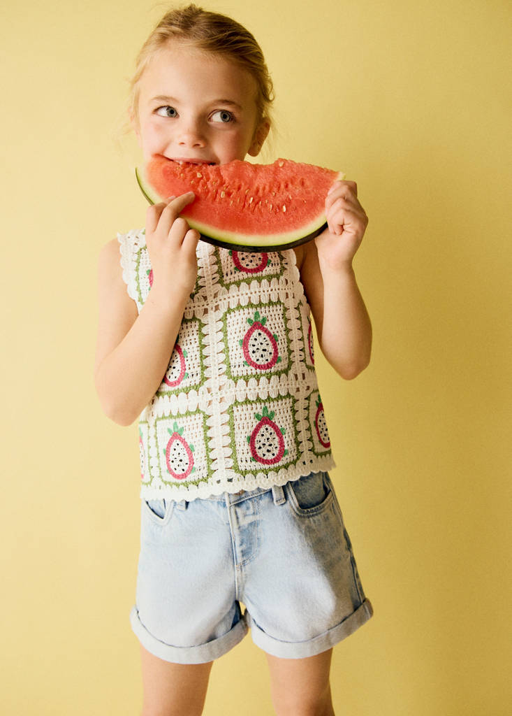 Crafted from denim-style cotton fabric, these shorts feature a straight and short design. They include belt loops, an elasticated waistband, five pockets, a metal button fastening, and a rolled hem.