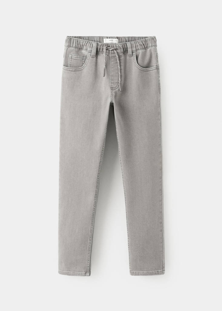 Denim fabric. Cotton fabric. Stretch fabric. Long design. Elastic waist with drawstring. Two side pockets. Two patch pockets at the back. Due to the washing process, the shade of the denim may show slight variations compared to the image displayed