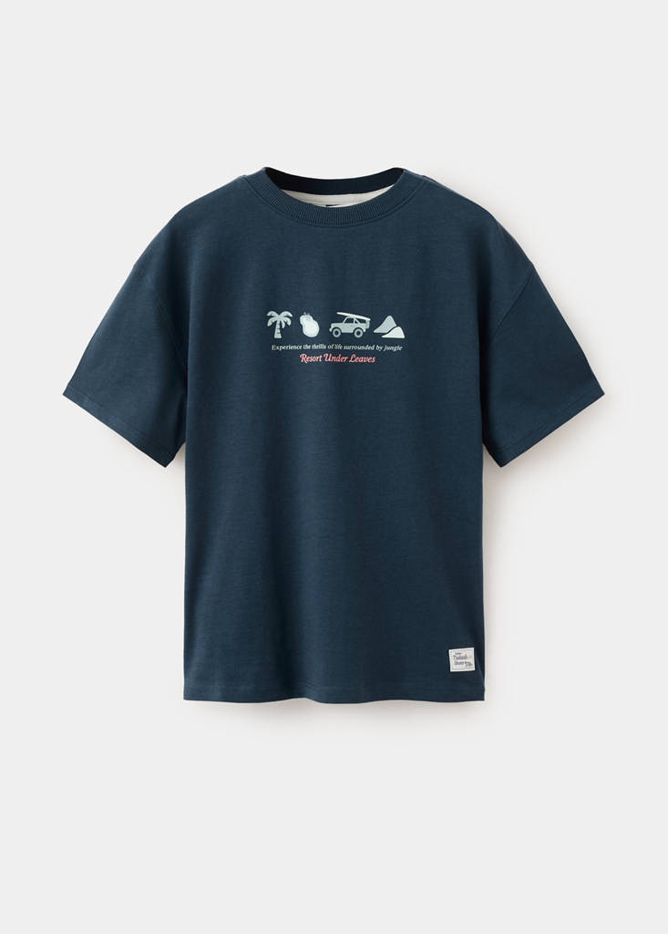 100% cotton fabric. Straight design. Round neck. Short sleeves. Printed drawing on the chest. Printed drawing on the back