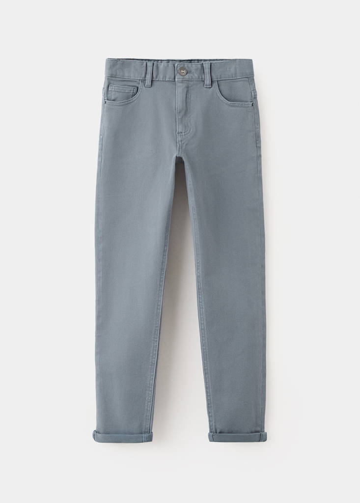 Crafted from cotton fabric, this design features a straight silhouette and regular waist fit. It includes belt loops, five pockets, and a hem at the bottom for a classic and functional finish.