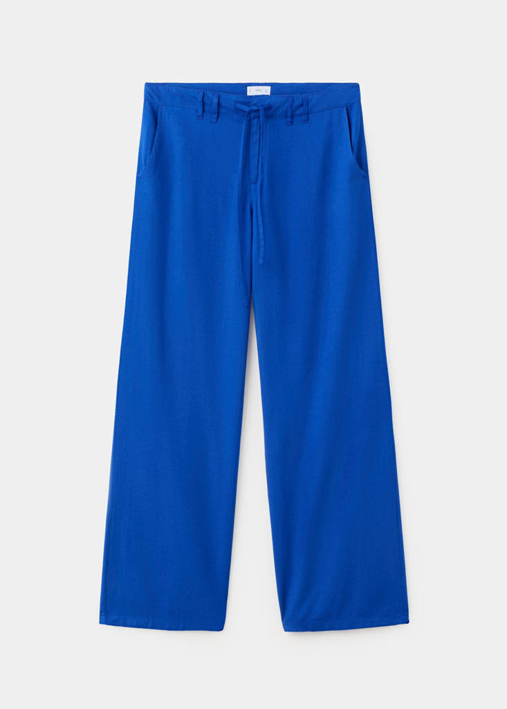Linen mix. Straight design. Long design. Belt loops. Two side pockets. Concealed hook and zip fastening. Tie fastening