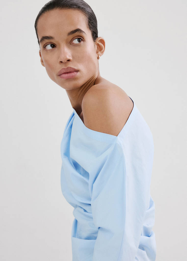 Cotton blouse with asymmetrical collar