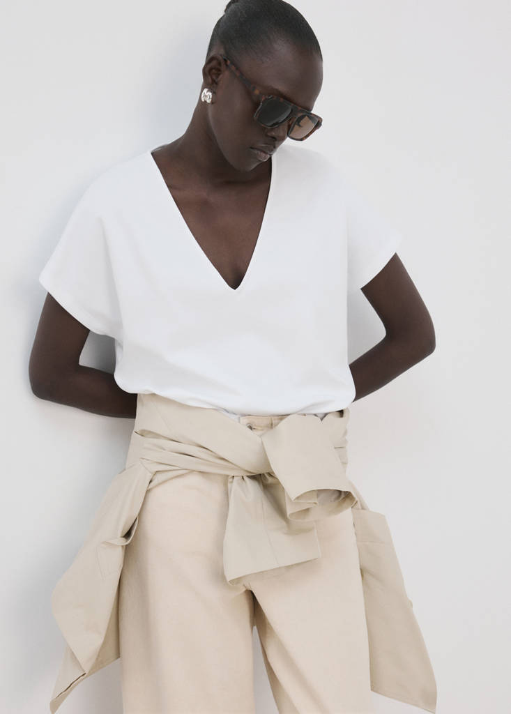 100% cotton fabric. V-neck. Short sleeves. No Fastening. Available Plus