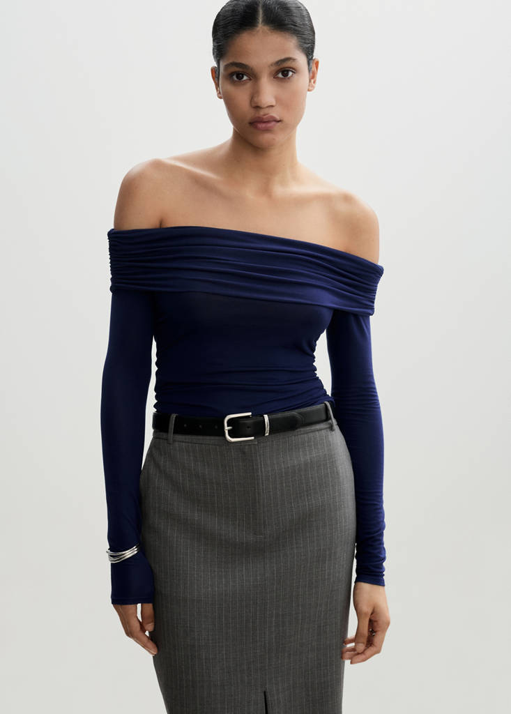 Camiseta hombros descubiertosPrecio actual [B$ 300,00 ]B$ 300,00Selecciona un colorAzulLa modelo lleva la talla S y mide 180cm.Selecciona tu tallaXSSMLXLMedidasAñadir a FavoritosVer lookEnvío gratis a tiendaTejido punto circular. Diseño off-shoulder. Hombros descubiertos. Cuello escotado. Manga larga. Detalles fruncidos. Diseño entalladoDetalles, composición y cuidadosDisponibilidad en tienda