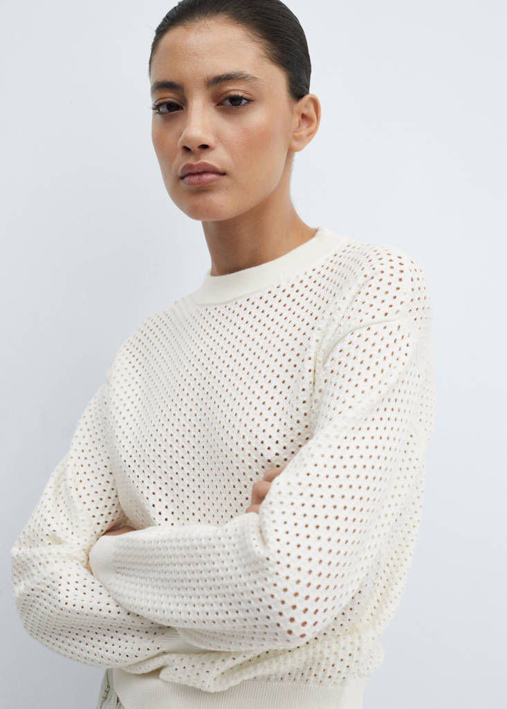 Jersey calado cuello redondoPrecio actual [B$ 480,00 ]B$ 480,00Selecciona un colorBlanco rotoLa modelo lleva la talla S y mide 180cm.Selecciona tu tallaXXSXSSMLXLXXLMedidasAñadir a FavoritosVer lookEnvío gratis a tiendaTejido de punto fino. Diseño calado. Diseño recto. Cuello redondo. Manga larga. Sin cierre. Terminaciones en canaléDetalles, composición y cuidadosDisponibilidad en tienda