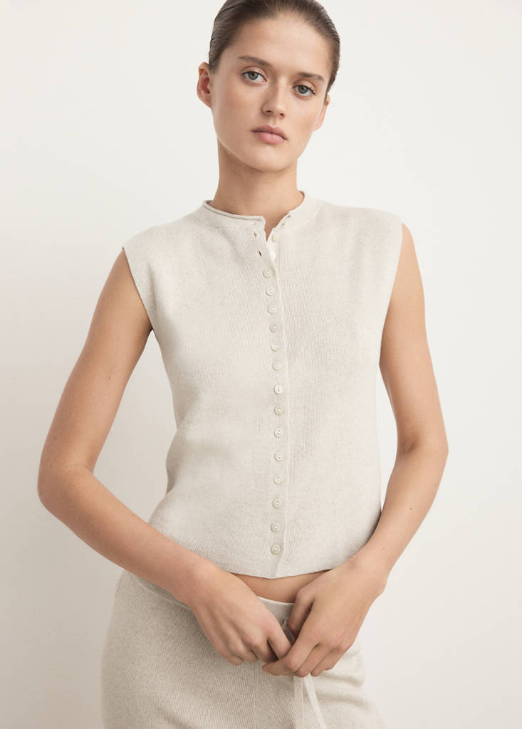 Ткань из хлопка и льна. Прямой крой. Застежка на пуговицы. Круглый вырез. Сочетается с другими продуктами коллекции.