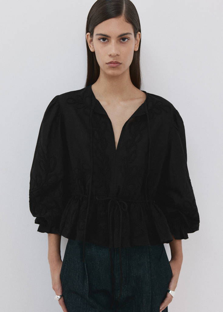 Хлопковая блузка с цветочной вышивкой