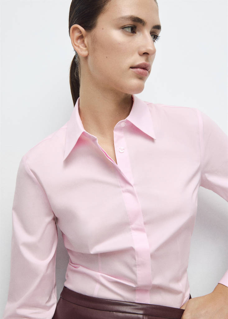 Приталенная рубашка из поплинаТекущая цена [Руб 129,99 ]Руб 129,99Выберите цветРозовыйВыберите свой размерXXSXSSMLXLXXL1XL2XL3XL4XLТаблица размеровДобавить в ФаворитыОцените образБесплатная доставка в магазинПроверить наличие в магазинеОписаниеМодель приталенного кроя из эластичного хлопкового поплина с рубашечным воротником, длинными рукавами с манжетами на пуговицах и застежкой на потайные пуговицы с планкойПодробнееПоделиться