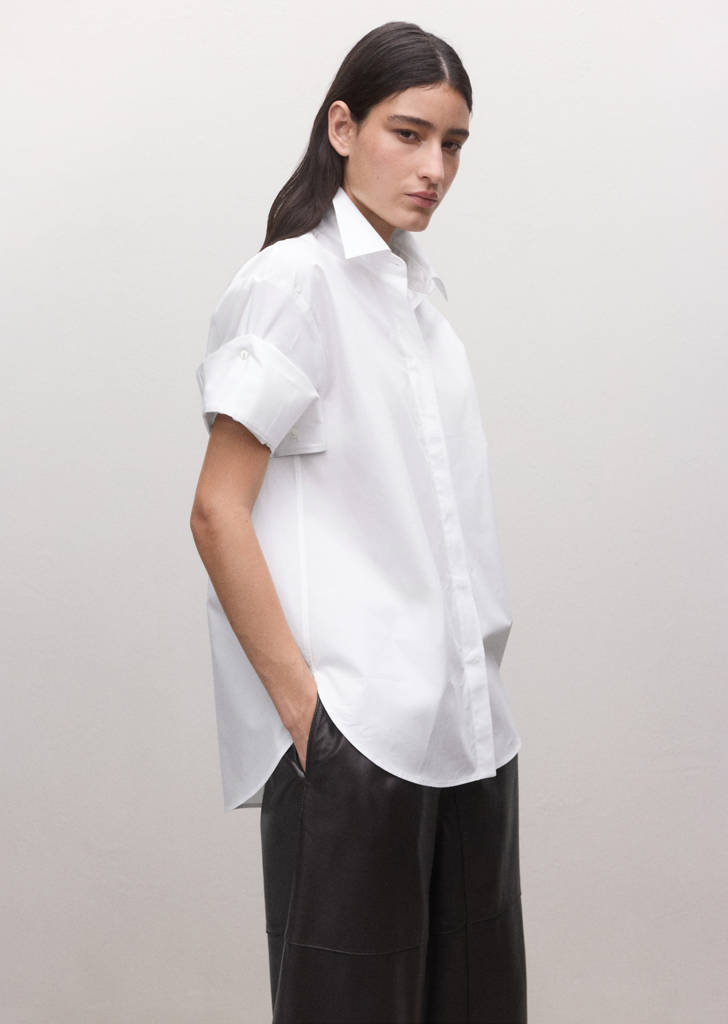 Ткань 100% хлопок. Прямой крой. Рубашечный воротник. Рукав три четверти. Передняя застежка на пуговицы, скрытые планкой. Коллекция Selection.