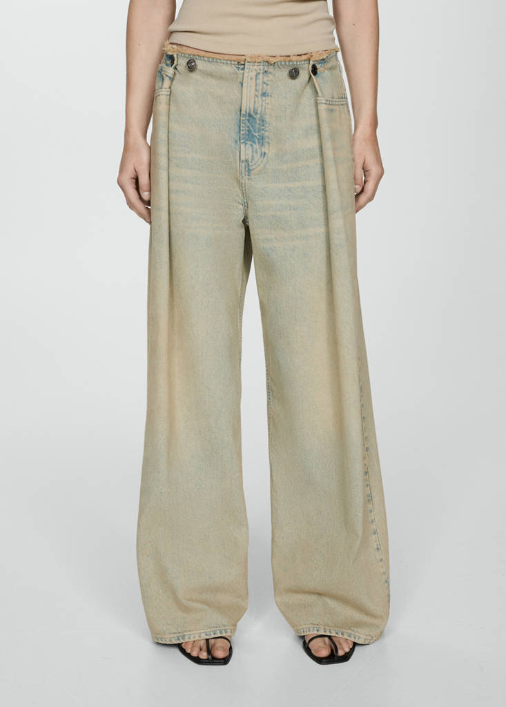 Хлопковая ткань в стиле джинсовой ковбойки. Фасон wideleg. Дизайн loose. Заниженная талия. Шлёвки. Пять карманов. Застежка-молния. Боковая застежка на пуговицы. Защипы. Total look. Длина по внутреннему шву 78 см