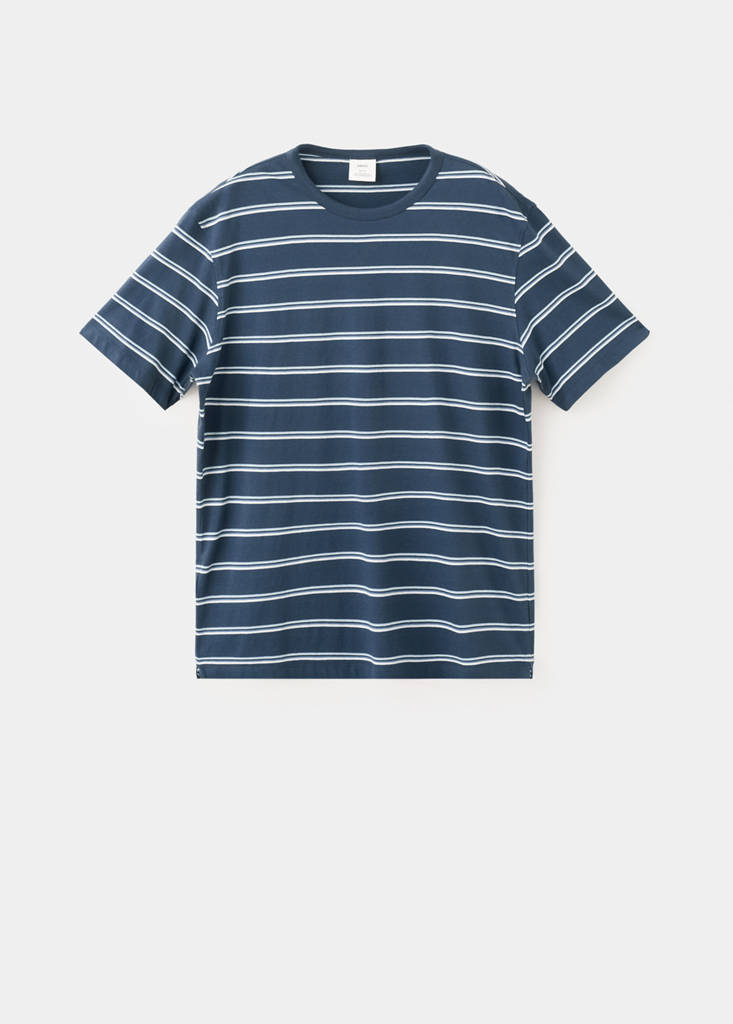 Свободный крой. Ткань 100% хлопок. Прямой крой. Дизайн в полоску. Круглый вырез. Короткий рукав. Прямой низ.