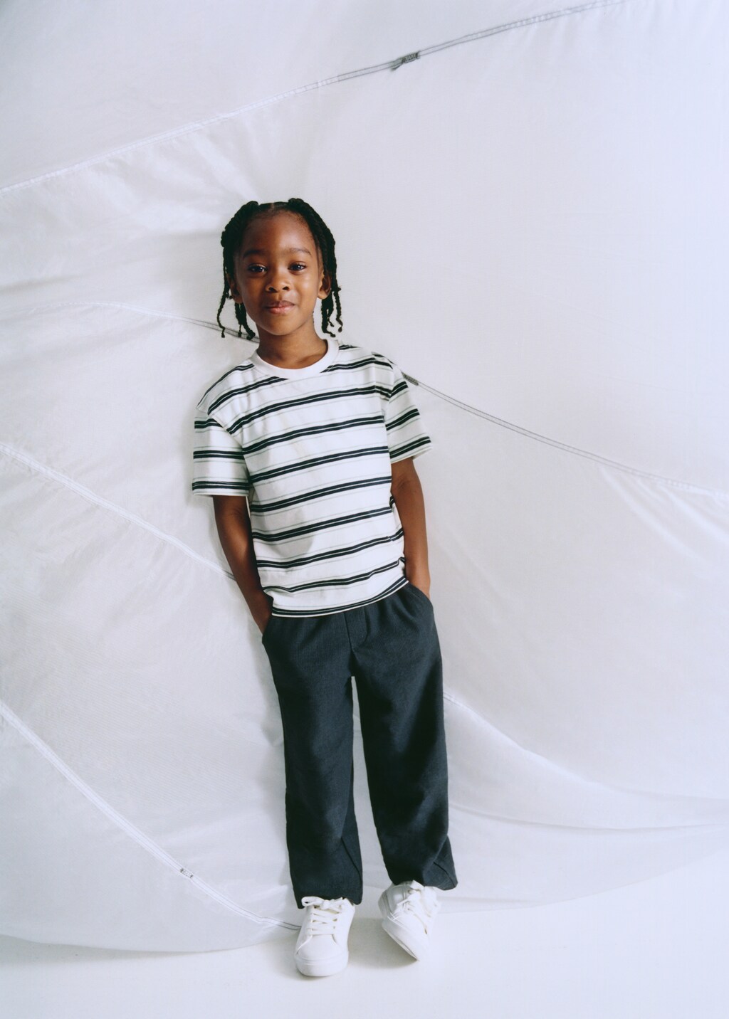 Crafted from cotton fabric, it features a straight and long design. The elasticated waistband with adjustable drawstring ensures a comfortable and personalised fit.