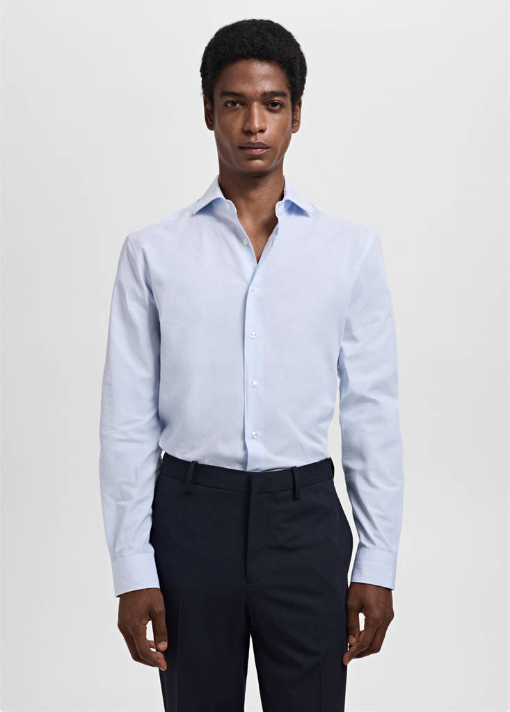 Tejido 100% algodón. Cuello italiano. Estampado Milrayas. Cierre delantero con botones. Manga larga con puños abotonados. Bajo redondeado