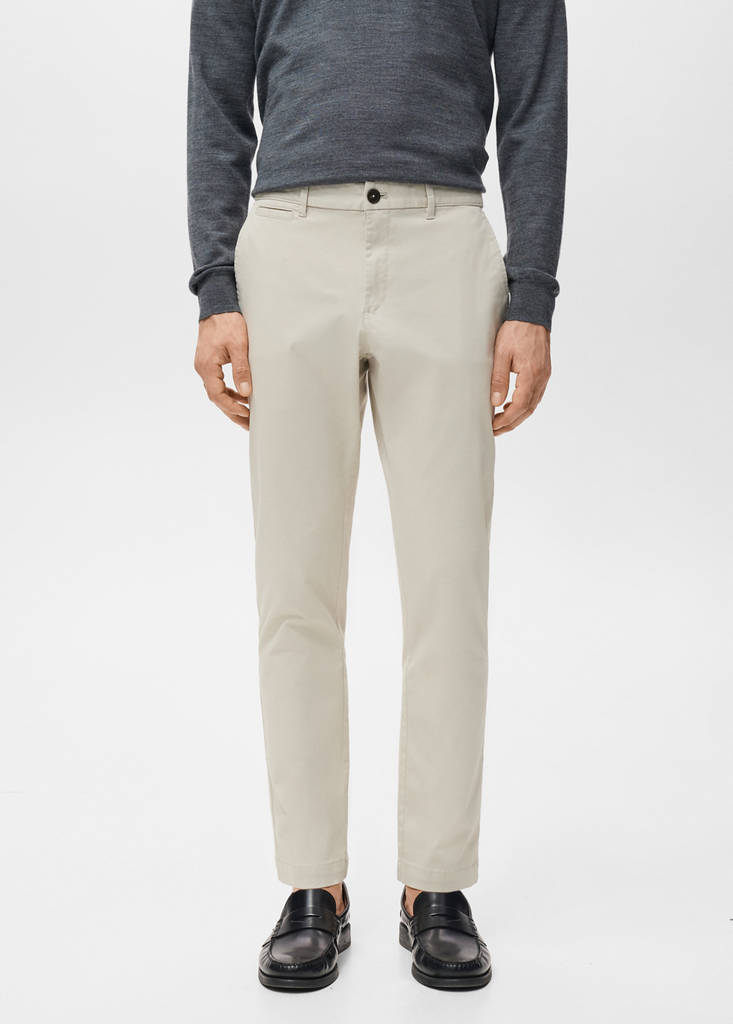 Estilo chinos. Super slim fit. Largo Crop. Tejido de algodón. Trabillas para cinturón. Cintura con cordón interior ajustable. Cierre de cremallera y botón. Banda de punto elástica en la cintura para mayor comodidad y sujeción. Bolsillo portamonedas a la altura de la cadera. Dos bolsillos delanteros. Dos bolsillos de solapa con botón en la parte posterior