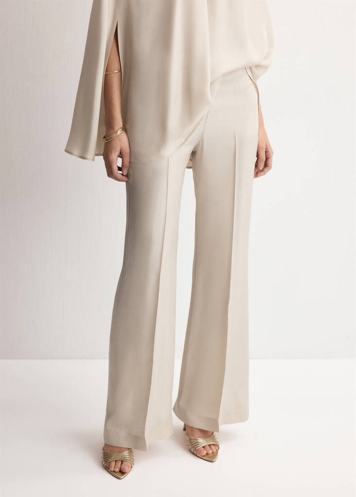 Diseño recto. Diseño largo. Tiro alto. Cierre de cremallera lateral. Total look. Esta prenda pertenece a nuestra colección de fiesta y evento, diseñada para elevar tus looks en ocasiones especiales