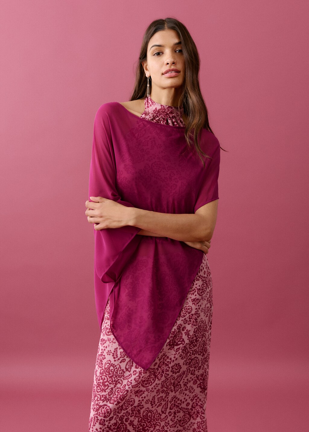 Tejido fluido. Diseño asimétrico. Mangas asimétricas. Sin cierre. Colección fiesta y eventos.