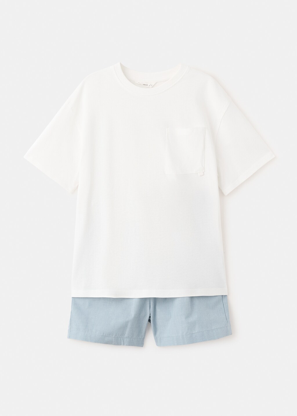 Pack of short-sleeved t-shirt and short pyjama trousers. 100% cotton fabric. Short sleeves. Knitted top with zip. Striped shorts. Elastic waist with drawstring.