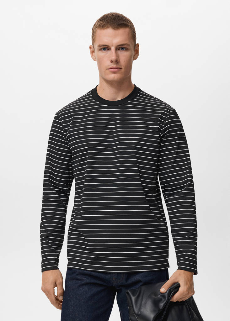 Regular fit. Stripe design. Round neck with ribbed finish. Long sleeves. Straight hem