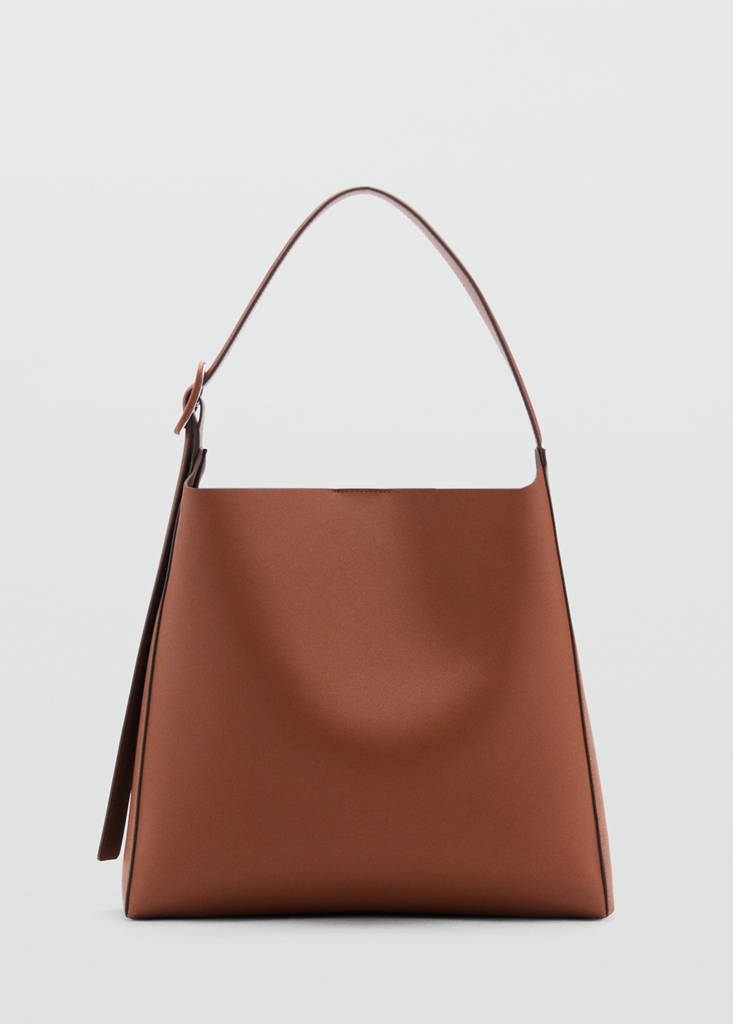 Adjustable short handle. Large. Shopper style. Adjustable and detachable long strap. Inner zipped pocket. Inside magnet fastening. Adjustable buckle. Inner lining. Office looks. Decorative buckle. Medium. Shoulder strap. Adjustable strap. Magnetic button closure. Inside bag. Zip closure