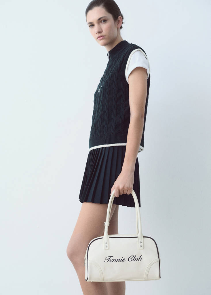 Leather-blend fabric. Shoulder strap. Printed message. Contrast trims. Zip closure. Interior pocket. Godo Collection