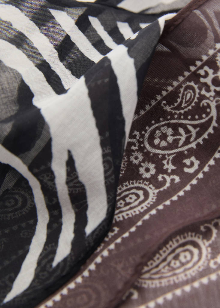 Set of 2 printed handkerchiefsCurrent price [$ 32.99 ]$ 32.99Select a colourBlackSelect your sizeOne sizeNot available. I want it!Notify meAdd to WishlistSee lookFree delivery to store100% cotton fabric. Fluid fabric. Paisley print. Leopard print. Animal print117.0x22.0 cmDetails, composition and careStore availabilityItem qualitiesRecycled cotton100%This fibre is obtained from pre- and post-consumer textile waste that is transformed into new fabrics.